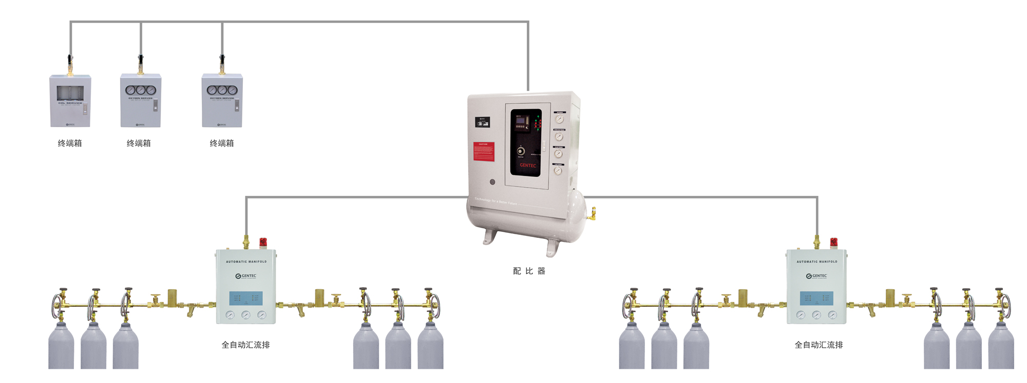 集中供氣系統(tǒng)又稱中央供氣系統(tǒng)(Central Gas Supply System),是一種越來越普遍被人們采用的一種供氣方式。它主要是由氣源,切換裝置,調(diào)壓裝置,終端用氣點(diǎn),監(jiān)控及報(bào)警裝置組成。簡(jiǎn)而言之,集中供氣系統(tǒng)將中央儲(chǔ)氣設(shè)備中的氣體經(jīng)切換裝置并調(diào)壓后通過管路系統(tǒng)輸送到各個(gè)分散的終端用氣點(diǎn)。工廠車間和實(shí)驗(yàn)室過去分散的鋼瓶供氣方式變得越來越過時(shí)并逐漸被廢棄不用。